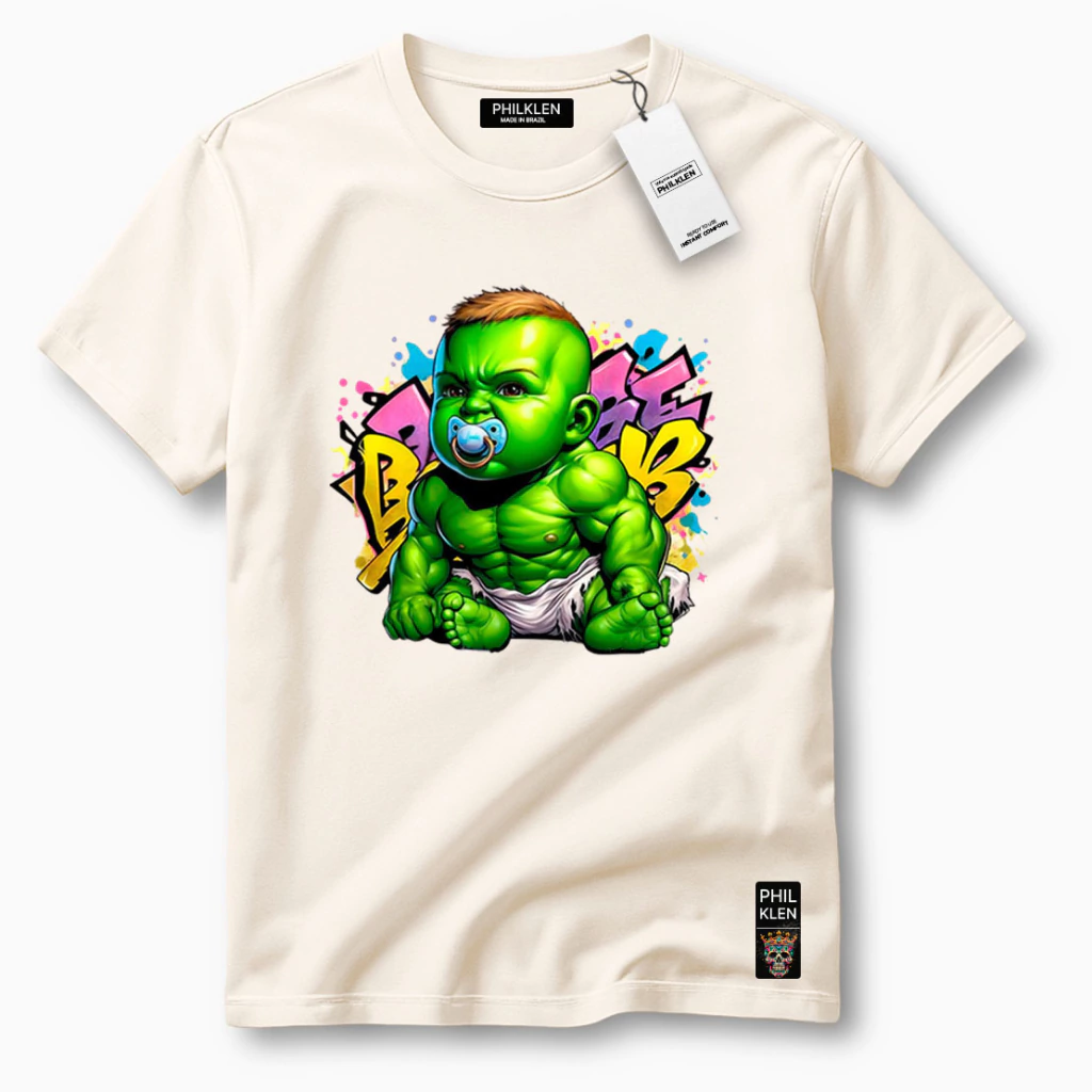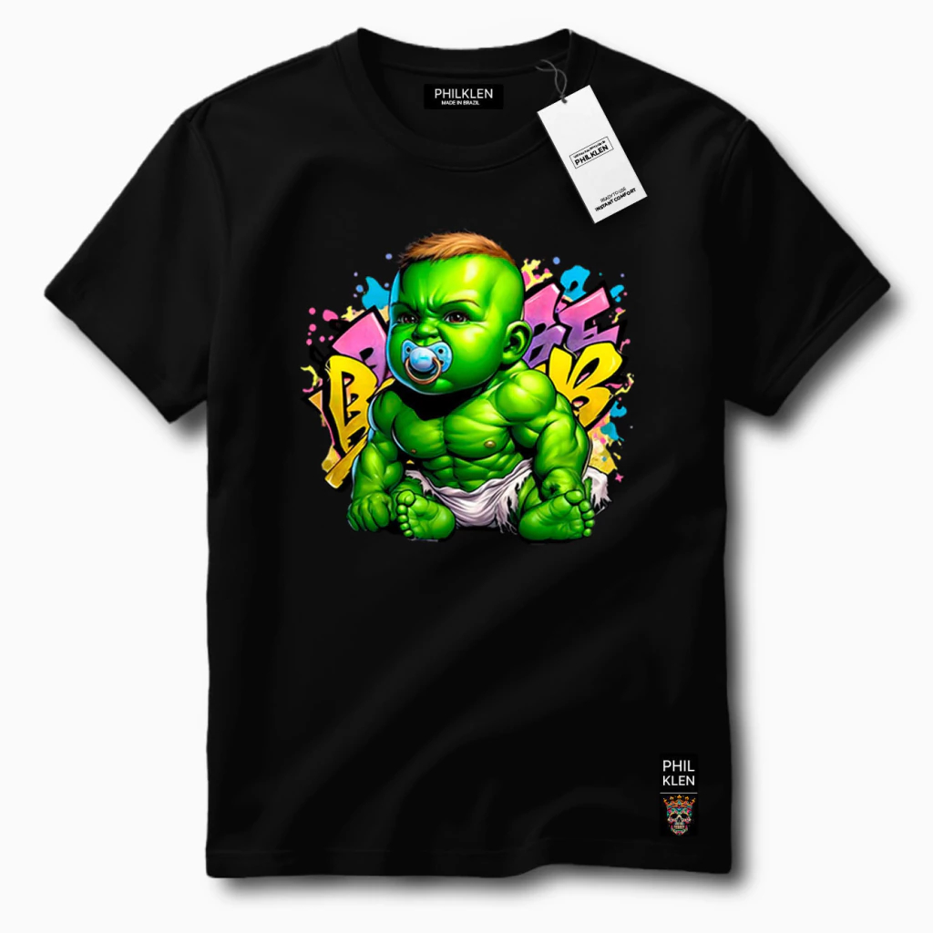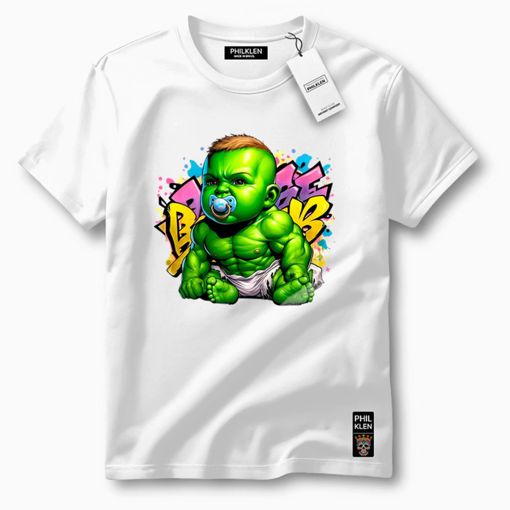 Traga um toque de humor e estilo ao seu guarda-roupa com a Camiseta Philklen e sua estampa Bebê Fitness!