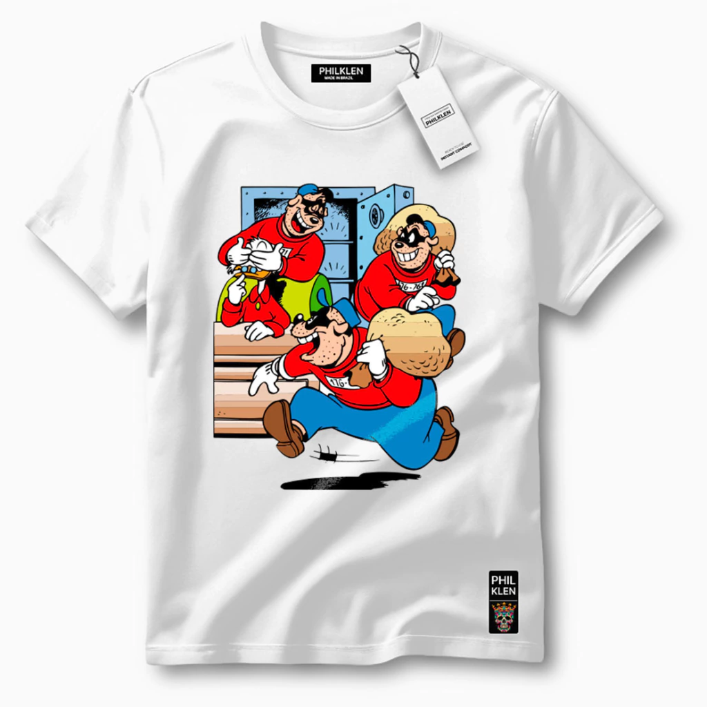 Adicione um toque divertido e icônico ao seu guarda-roupa com a Camiseta Philklen e sua estampa Irmãos Metralha.