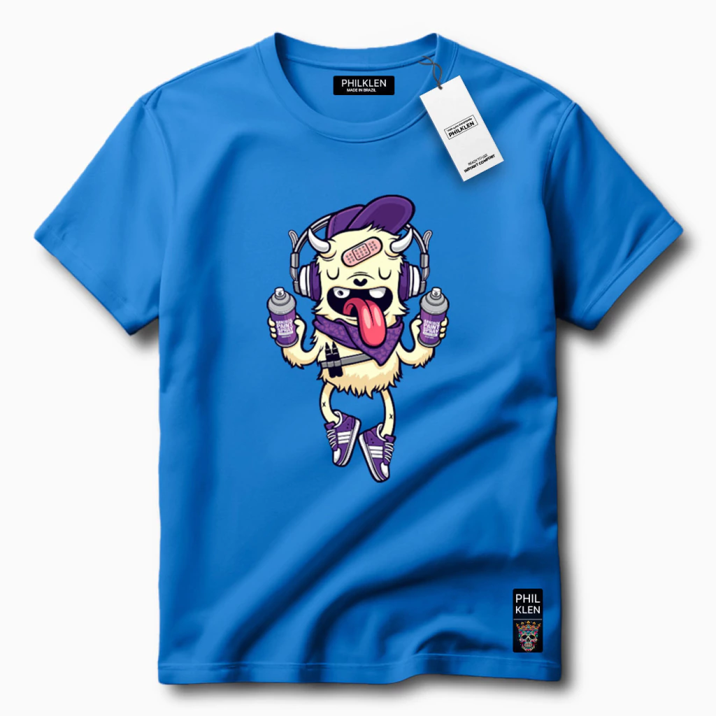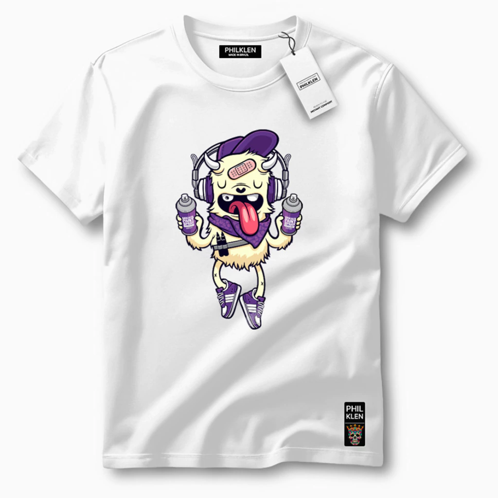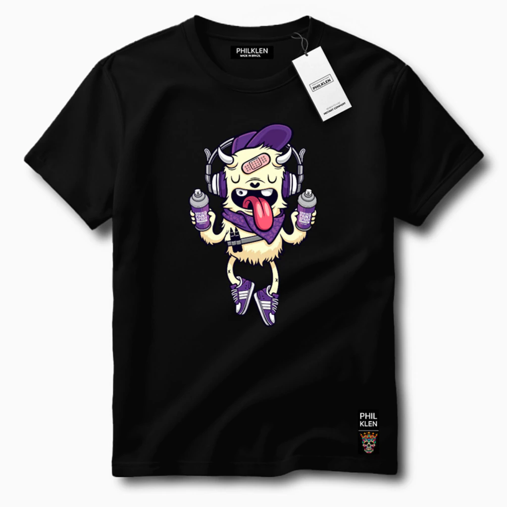 Expresse seu estilo urbano e criativo com a Camiseta Philklen e a estampa exclusiva de Personagem Spray!