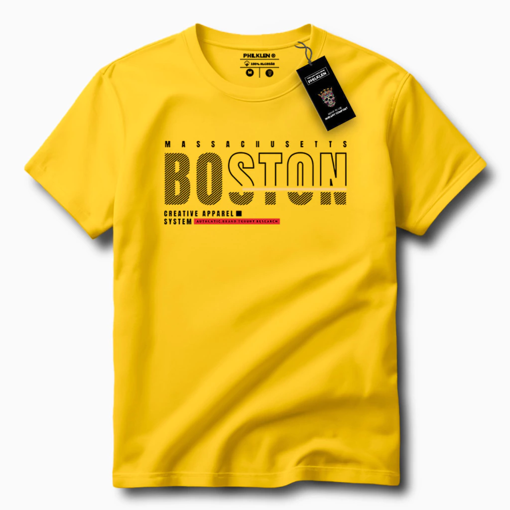 Com um design moderno e cheio de personalidade, essa camiseta traz a icônica frase "BOSTON - MASSACHUSETTS" com detalhes que remetem à cidade, como linhas geométricas e cores vibrantes. É para quem curte um visual autêntico e cheio de estilo urbano.