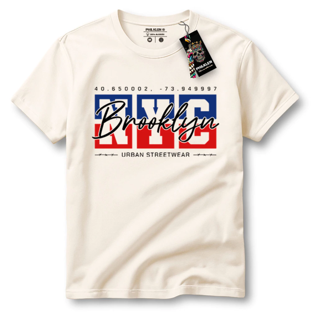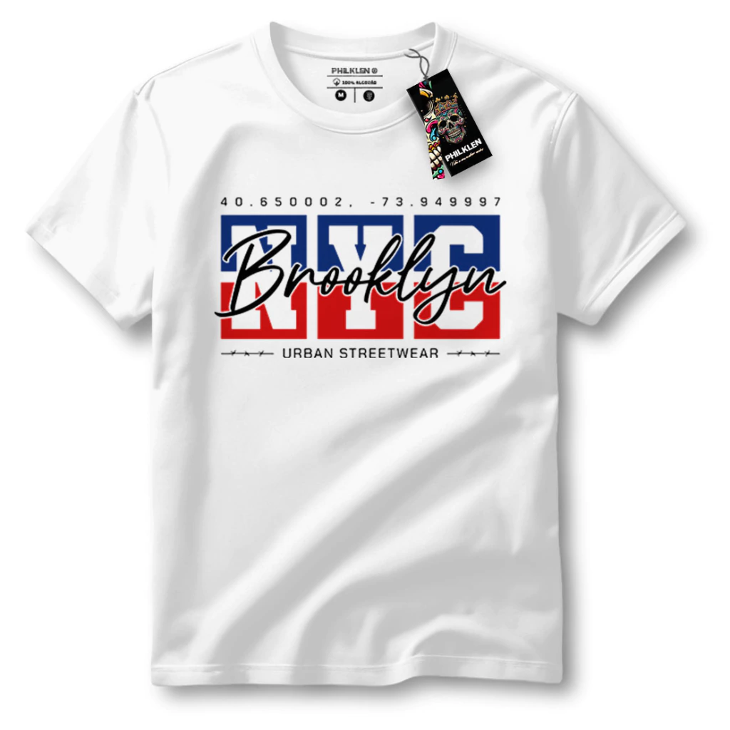 Com um design moderno e cheio de personalidade, essa camiseta traz a palavra "Brooklyn" em um estilo lettering vibrante, sobreposta a coordenadas geográficas que remetem à localização do famoso bairro de Nova York. A frase "URBAN STREETWEAR" reforça o estilo urbano e autêntico da peça.