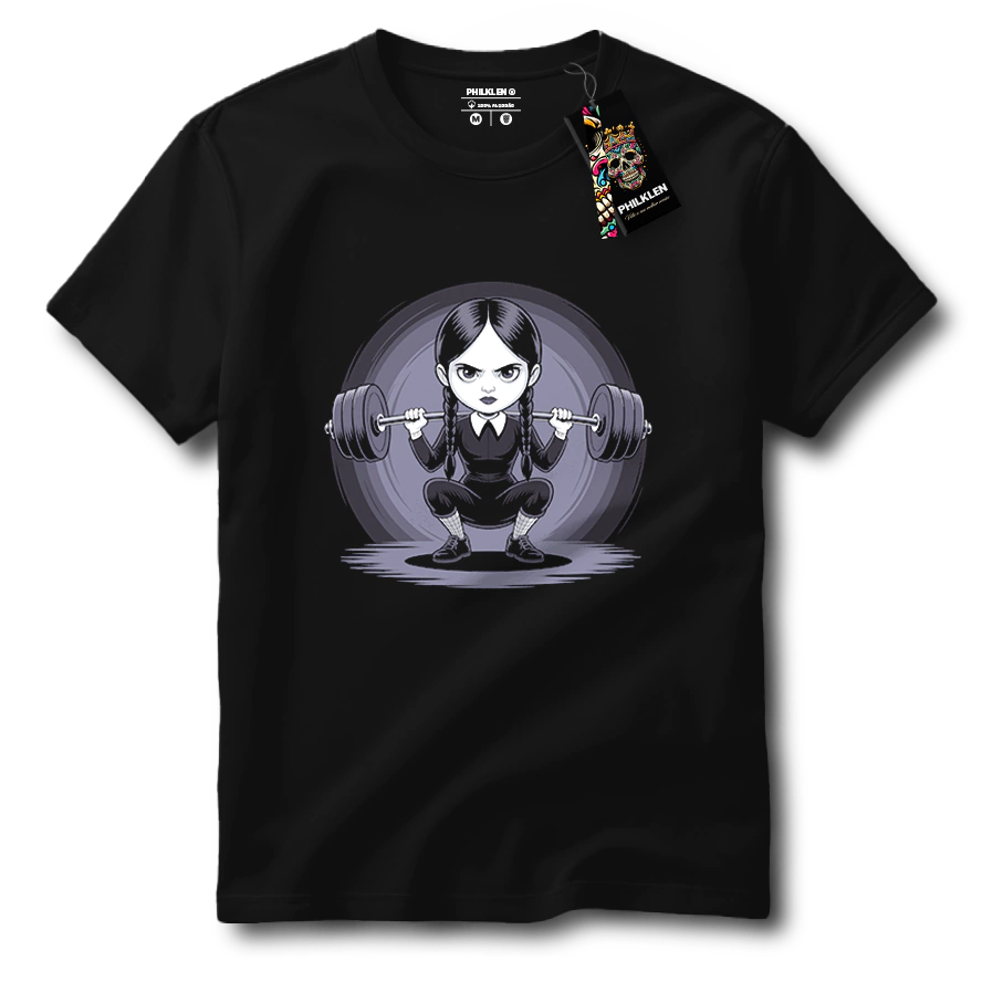 A Camiseta Personagem Fitness da Philklen une o poder feminino com um toque de humor sombrio e criativo.