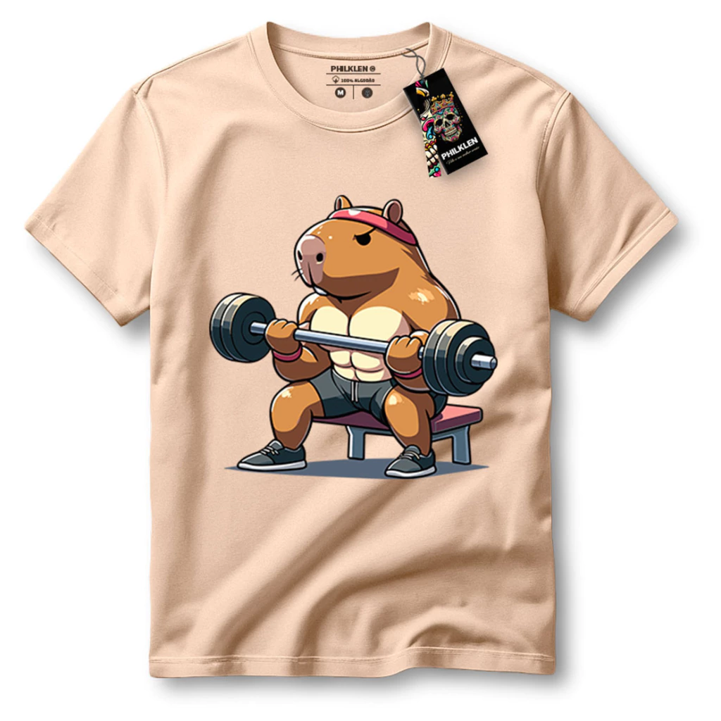 Com um design moderno e cheio de humor, essa camiseta traz uma capivara em uma versão fitness, sentada em um banco e levantando peso com determinação. É para quem curte um visual divertido, com um toque de originalidade e que te motiva a alcançar seus objetivos.