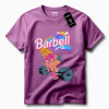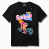 Com um design moderno e cheio de humor, essa camiseta traz a icônica Barbie em uma versão fitness, levantando peso e mostrando que ela também tem força! A palavra "Barbell" (barra) em destaque e os elementos gráficos retrô completam o visual divertido e cheio de referências à cultura pop e estética dos anos 80/90.