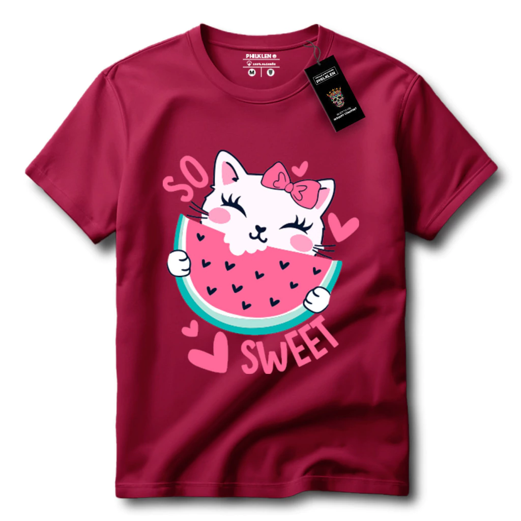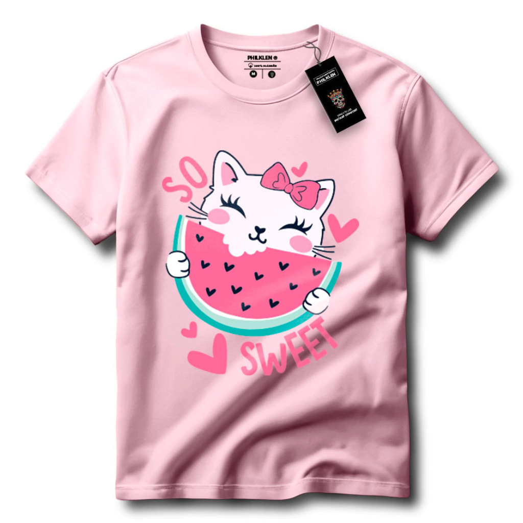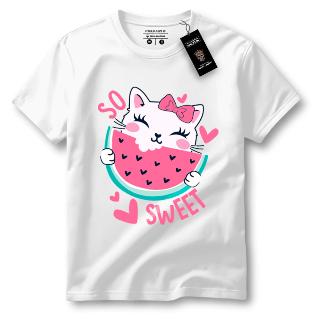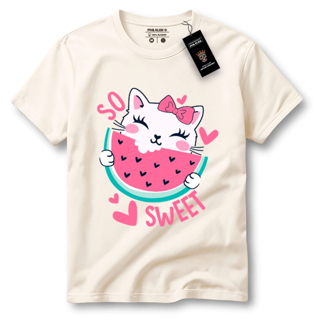 Apresentamos nossa Camiseta Feminina de Algodão com Estampa Adorável de Gatinha e Melancia da marca Philklen! Essa camiseta encantadora é perfeita para quem ama um estilo doce e divertido. Com uma estampa fofa de uma gatinha segurando uma fatia de melancia, acompanhada pela frase "SO SWEET", ela traz um toque de alegria e descontração ao seu guarda-roupa. Confeccionada em 100% algodão premium, oferece conforto e um caimento ideal para o uso diário. Adicione um toque de charme à sua coleção com esta peça irresistível!